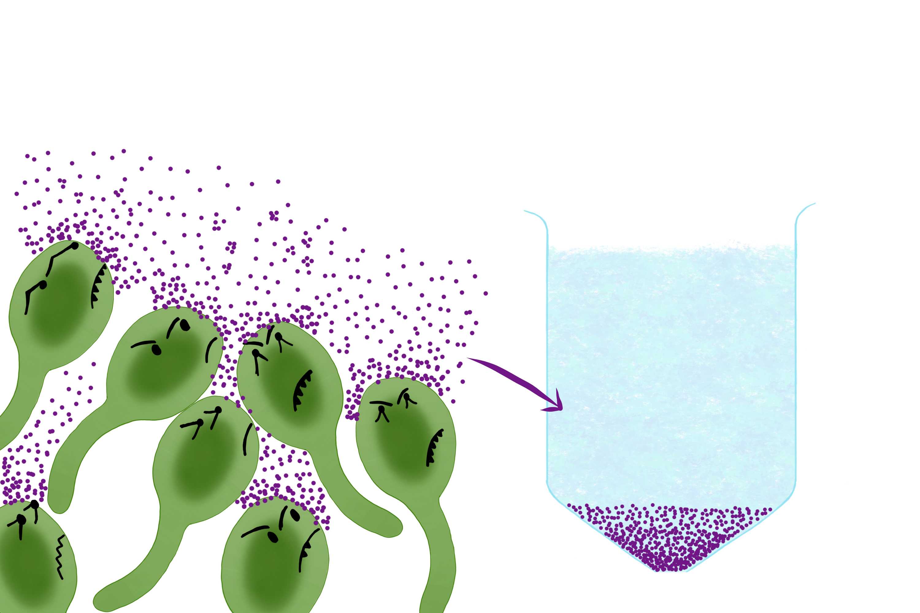 Tetanus bacteria - Clostridium tetani (green) releases the tetanus toxin (purple) which is used in the vaccine against tetanus. © Sunaina Rao.